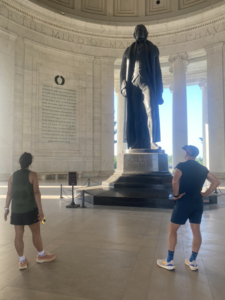This scenic, history-infused run takes you along the iconic Tidal Basin, home to over 3,000 cherry trees and surrounded by monuments that tell the story of leadership, resilience, and change. You'll jog through breathtaking paths while stopping at the Thomas Jefferson, Franklin D. Roosevelt, and Martin Luther King, Jr. Memorials — each one offering a powerful moment of reflection and awe.