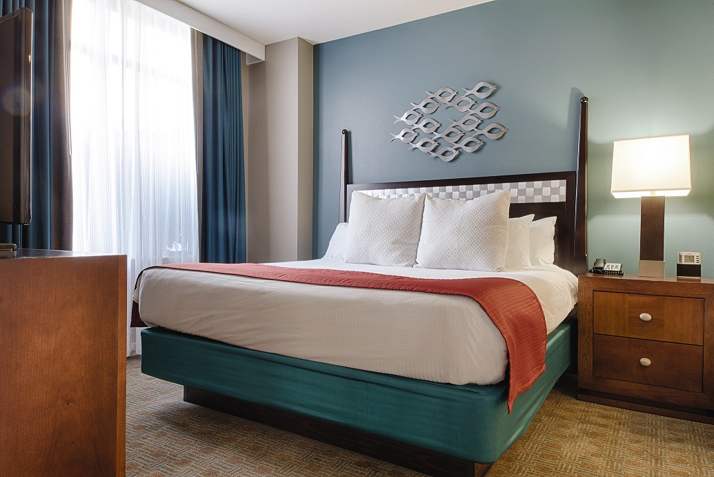 Offering spacious one-, two- and three-bedroom resort suites that comfortably sleep four to ten guests and range from 723 to 1,296 square feet. Suites feature private bedrooms with one king bed in the master, one king or two double beds in the guest rooms and a queen sleeper sofa in the living area. You will appreciate the economy of a fully equipped kitchen, separate living/dining areas and convenient comforts available in select suites, including a whirlpool tub and a private balcony.