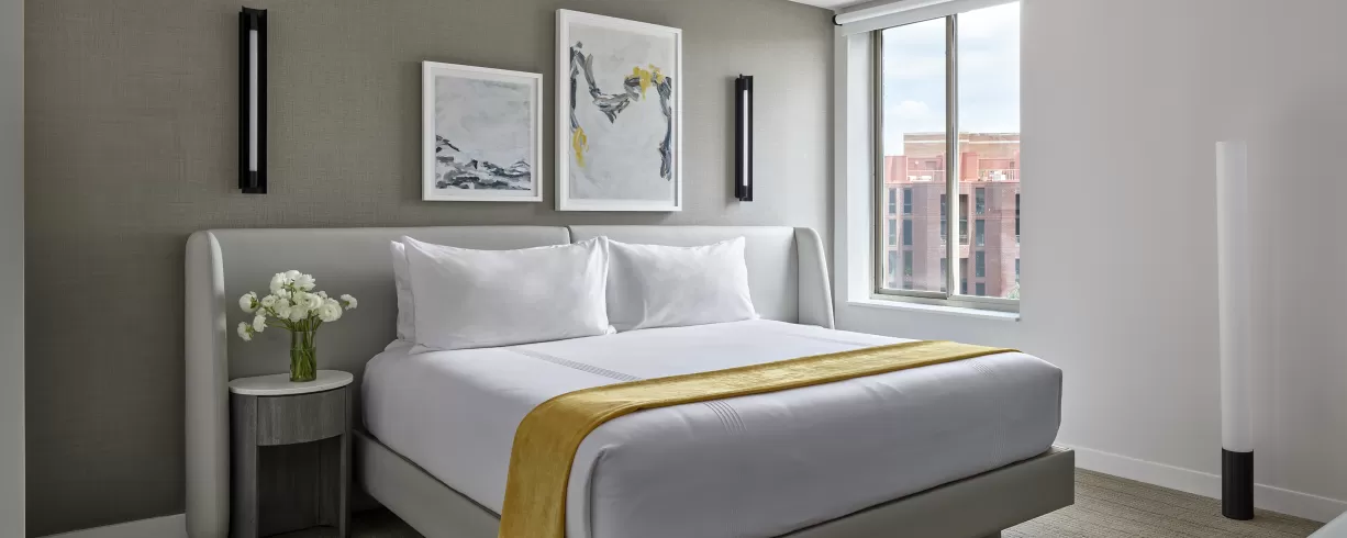 Hotel AKA Washington Circle offers a sophisticated stay in the vibrant Foggy Bottom/West End neighborhood in downtown Washington, DC. Conveniently located directly across from the Foggy Bottom Metro station, this boutique hotel features luxury accommodations perfect for both short and long-term stays, including contemporary guestrooms and spacious one-bedroom suites, many with terraces and full kitchens or kitchenettes.