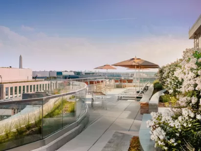 Upscale D.C. venue near the Convention Center with Capitol views, top AV meeting room, luxe lounge, and full-floor rooftop for events.