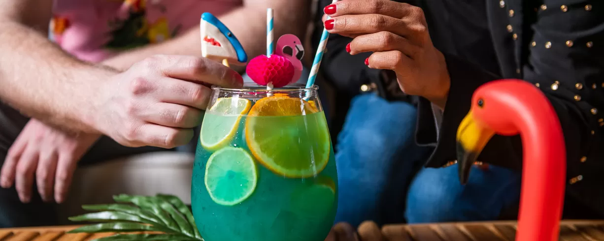 Flamingle upstairs at THRōW Social in an easy, breezy tropical atmosphere. Sip on specialty cocktails, indulge in mouthwatering food, and enjoy live DJs all day (or night!) long. Rent a VIP Cabana, play backyard-style games like corn hole & light-up ping-pong, then dance the night away!