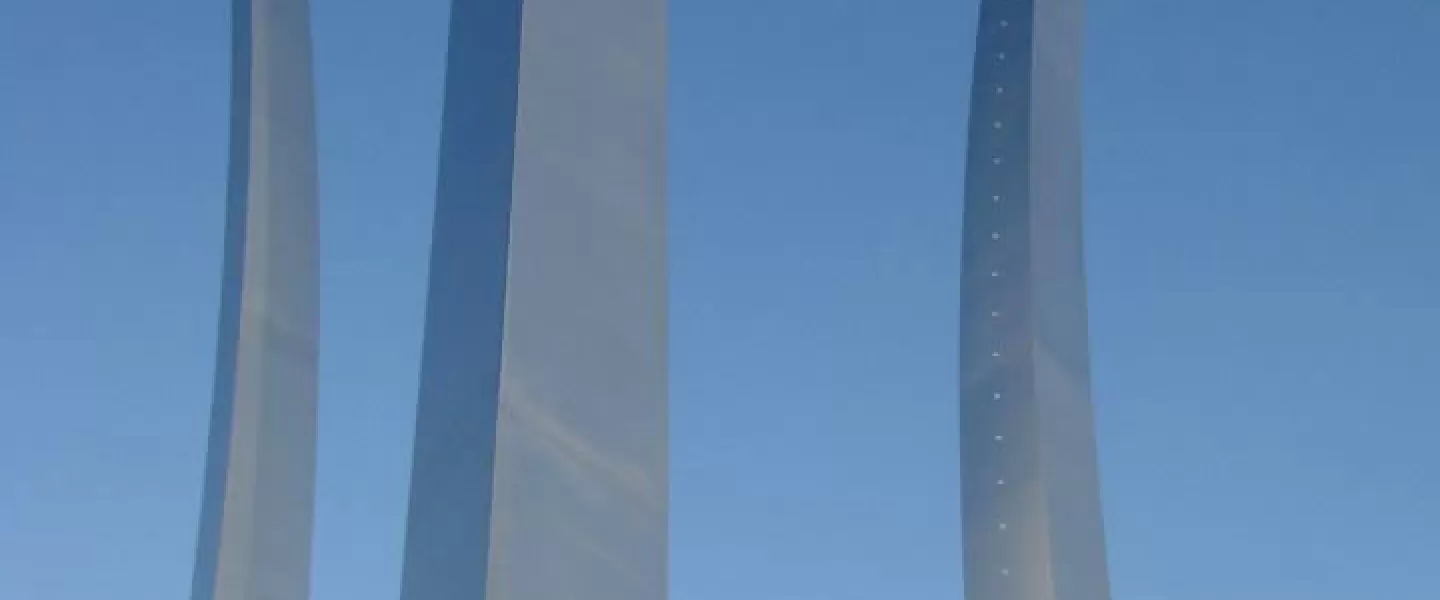 Located in Arlington, VA, the United States Air Force Memorial honors the service and heritage of the men and women of the United States Air Force. The three stainless steel spires reach a height of 402 feet above sea-level. It is adjacent to the Arlington National Cemetery and overlooks the Pentagon.